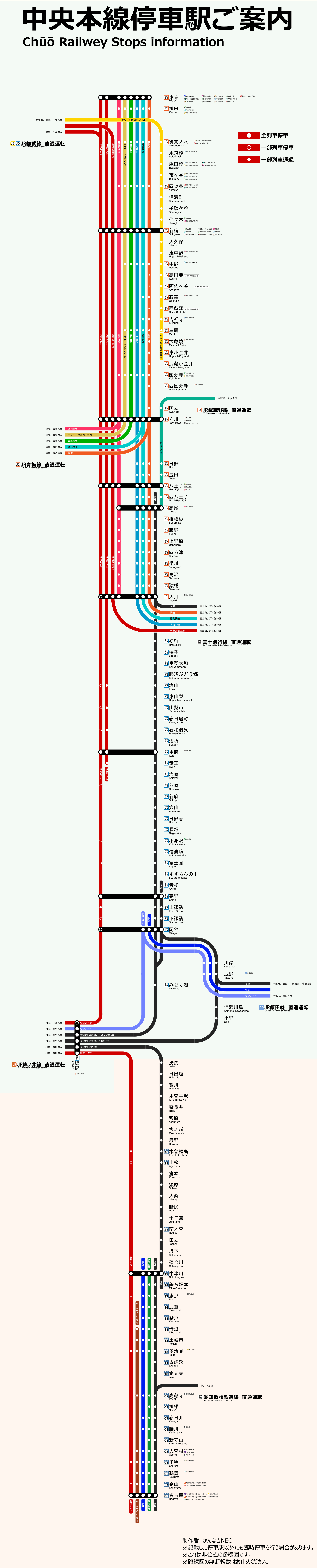 【完全版】中央本線 路線図(東京~名古屋)